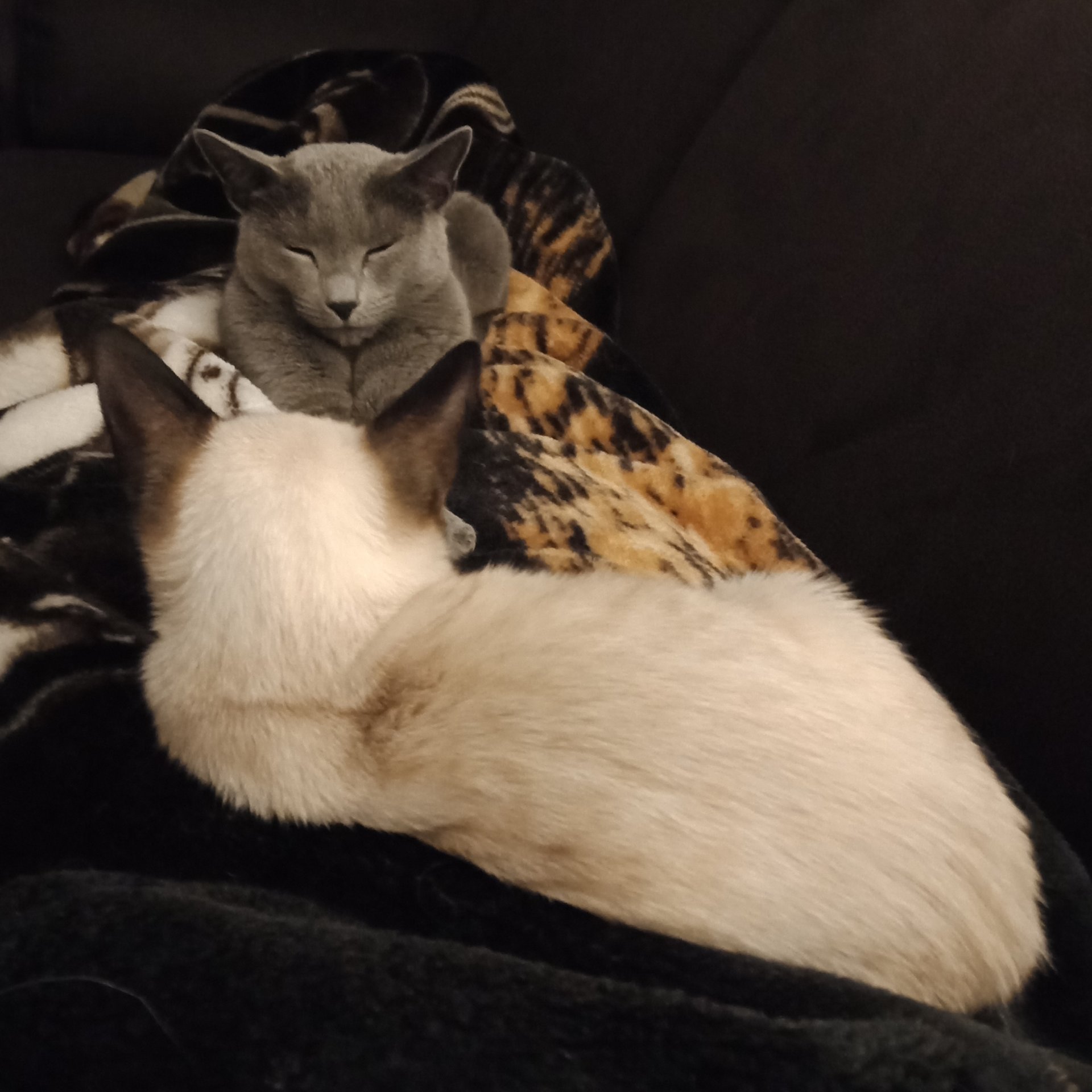 Er kann schreien, wie ein Baby!Balou macht das genau richtig! Manchmal ist Überrumpelung erlaubt. Als Zinnie bei uns einzog und bei den Katzen allgemein als Nervensäge landete, hab ich den müden Helden einmal der schlafenden Bibi direkt ans Fell gelegt. So schliefen die Zwei dann ne ganze Weile und als Bibi aufwachte, hatte der Rote nen Meter Boden gut gemacht bei ihr.BlueCatWomen schrieb:Andersrum! Balou drückt hier jeder Katze mit Vollgas die Nase mitten in das Gesicht. Cleo war Grad so perplex, dass sie vergessen hat zu zicken.