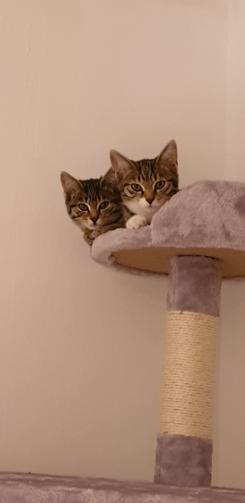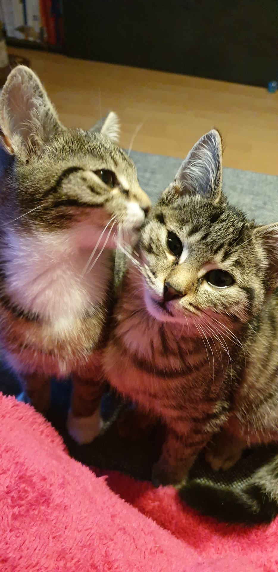 ich hab seit 3 Tagen nun 2 Katzenbabys bei mir. Eigentlich machen die beiden es wirklich toll. Sie kommen aus dem Tierheim und sind jetzt 15 Wochen alt. Sie spielen den ganzen Tag schön zusammen, kuscheln viel mit mir und miteinander, fressen gut, gehen problemlos aufs Katzenklo.