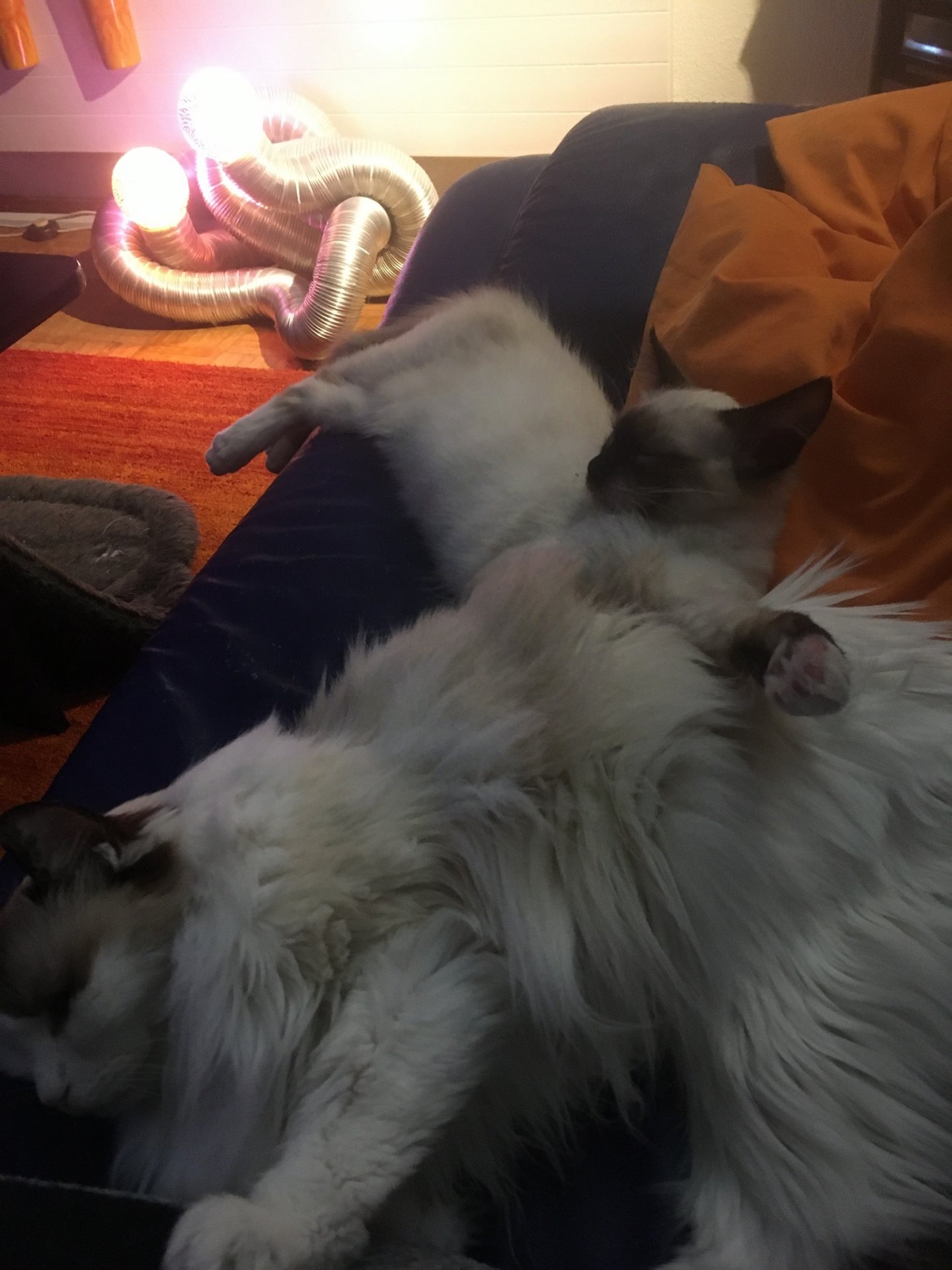 Er war schon bei der Züchterin unsauber. Sie hat dann das Futter gewechselt, weil sie dachte es liegt am Hühnchen. Nach ein paar Tagen war es tatsächlich gut und sie kamen zu mir. In der ersten Woche war bei mir auch gut und dann hat es wieder angefangen. Mit Häufchen neben dem Kistchen war es noch ok, aber dann hat er angefangen rein zu pullern. Er scheint irgend ein Problem zu haben und sie möchte mir keine unsaubere Katze überlassen. Wie lange es dauert kann ich nicht sagen, ich hoffe nur ein paar Tage. Ich weiss ehrlich gesagt nicht was ich mache, wenn er nicht sauber wird. Meine Katzen sollen überall hin dürfen, auch ins Bett, was aber nicht geht wenn einer drauf pieselt. Auch der alte Domino ist es gewohnt bei mir zu schlafen, das ginge dann auch nicht mehr, es sei denn den Piesler über Nacht in die Küche sperren und das möchte ich auch nicht. Ich würde sogar Geld für einen Katzenpsychologen ausgeben, wenn ich das Gefühl hätte es bringt etwas. Ich denke ich lasse Hudi bei mir und bespasse ihn so gut ich kann. Er darf sich jetzt auch immer frei in der Wohnung aufhalten und hat letzte Nacht bei mir und Domino geschlafen. Domino hat sich mit ihm arrangiert.