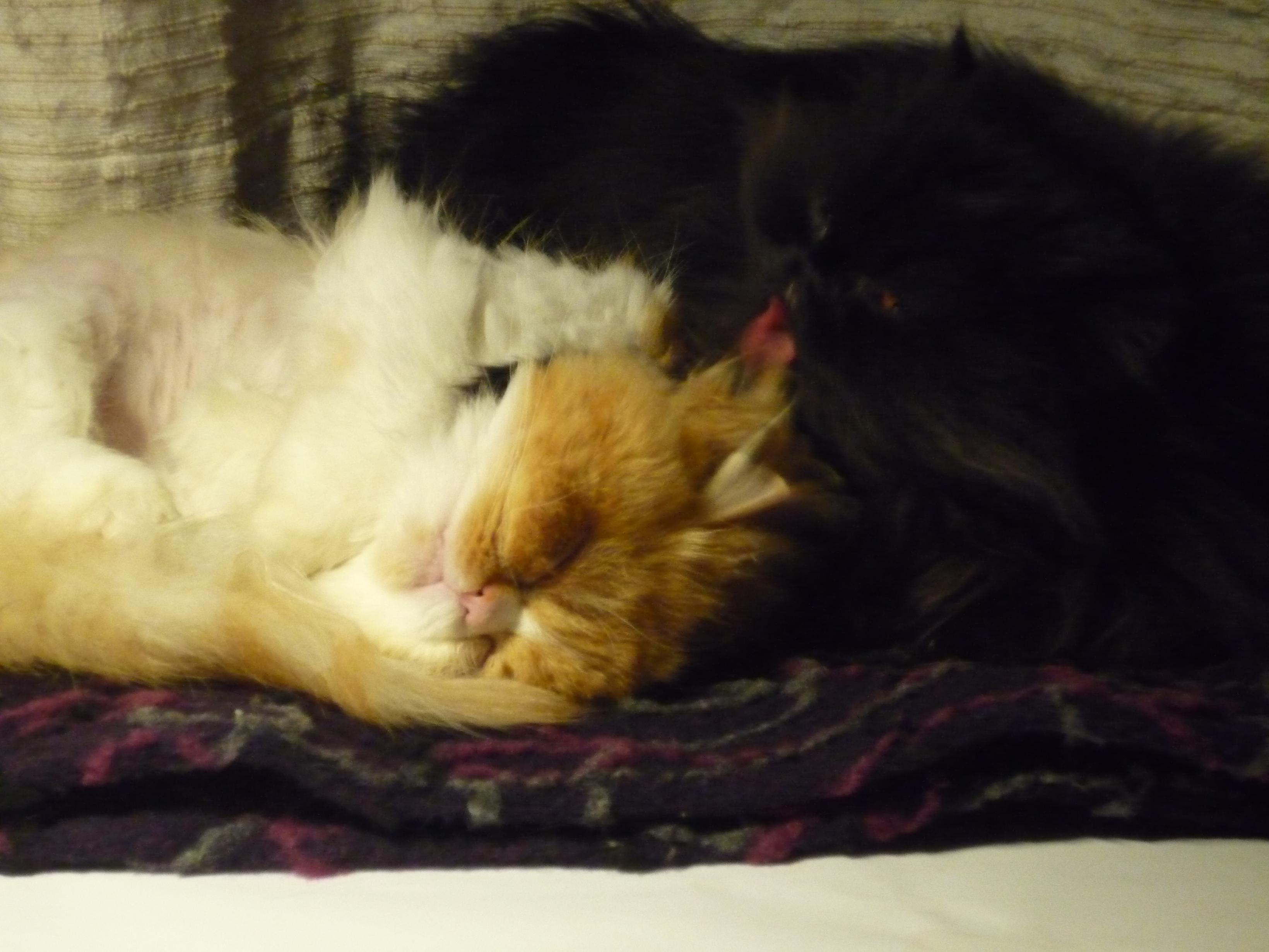 Inzwischen lebt hier dauerhaft ein alter Kater, Kasi, er zog vor bald 2 Jahren hier ein. Moira (inzwischen auch 11 Jahre alt) geht an seinen Napf - und er verzieht sich ohne ein Wort und lässt ihr den Vortritt. Also füttere ich wieder getrennt *seufz*