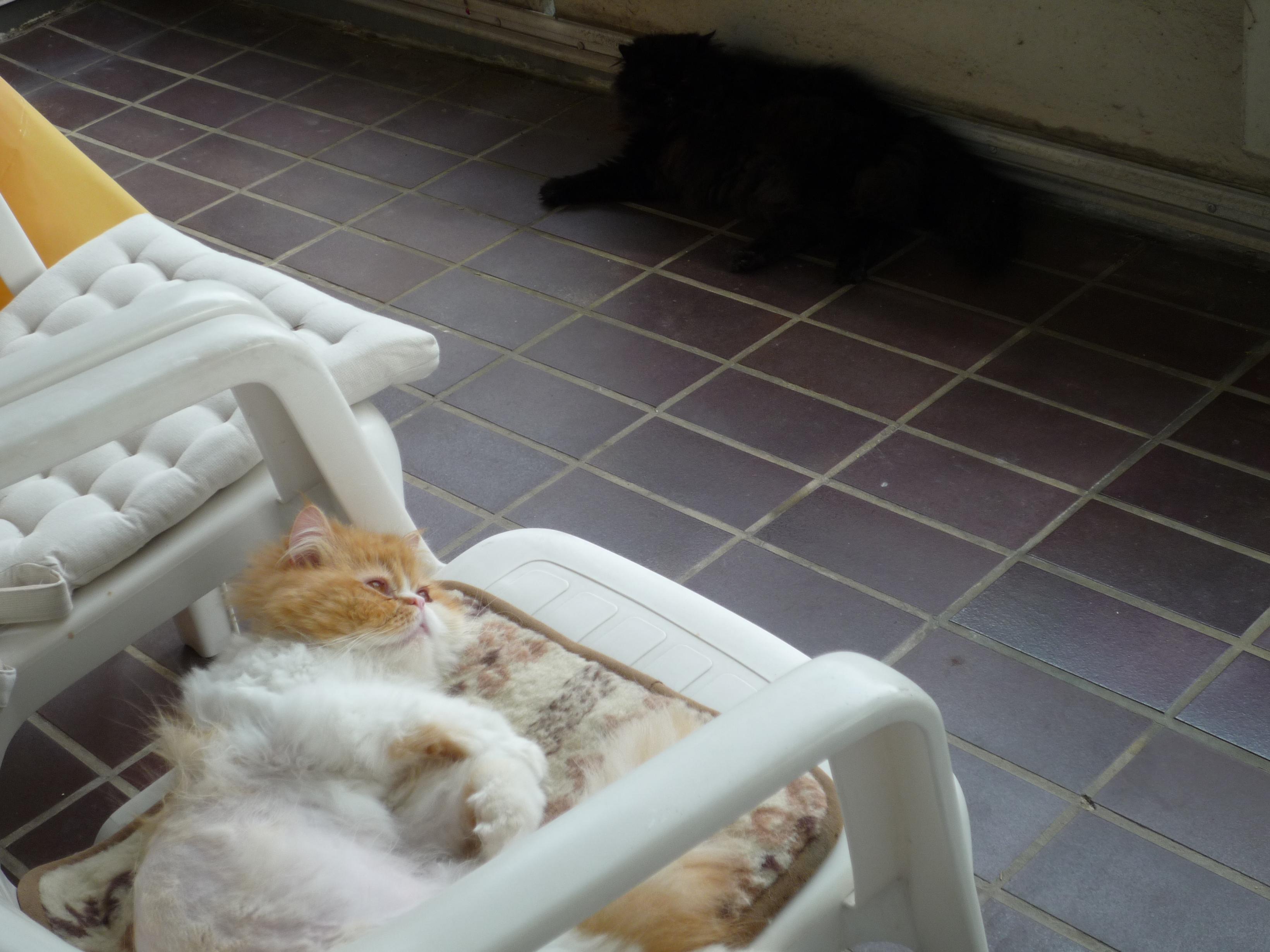 Zufällig habe ich entdeckt, dass ich ihn auf diesem Stuhl vorsichtig bürsten darf, sogar mit Tommys Bürste! Und das mache ich auch, ich fange mit dem Brustfell an, dem Nackenfell, dem Katzenschwanz, dazwischen ist immer noch nicht all zu viel, das Fell wächst sehr unregelmäßig nach.