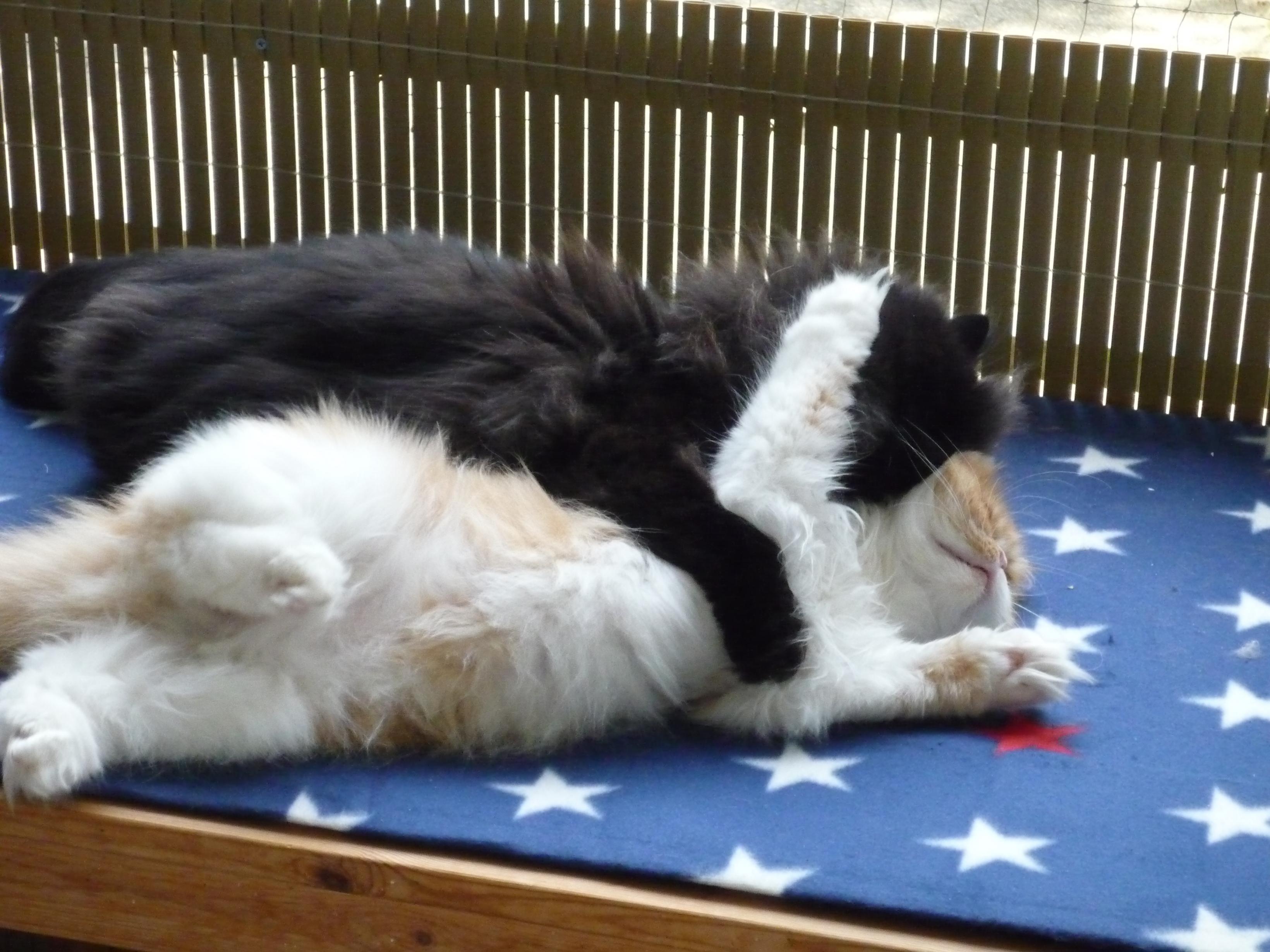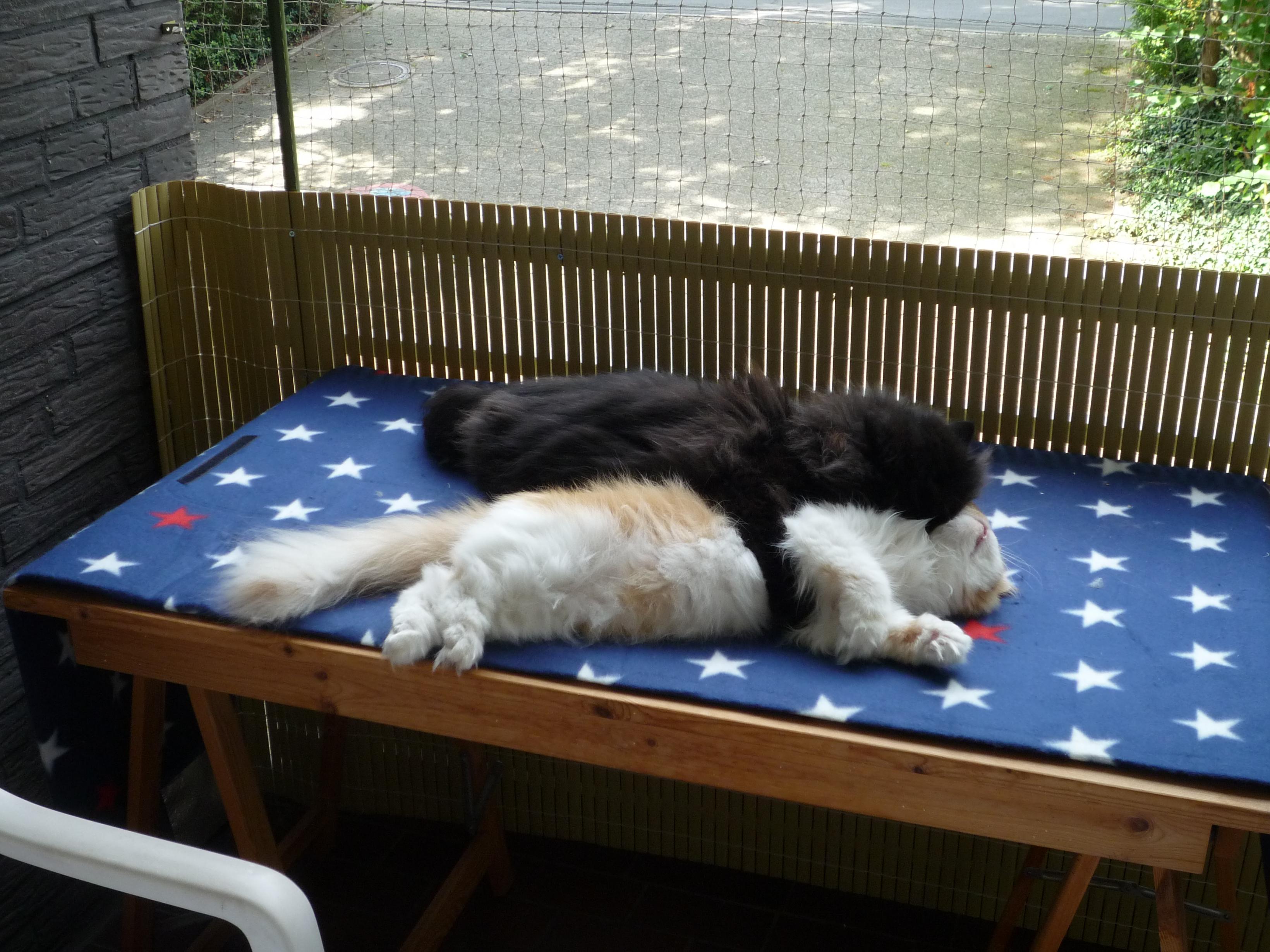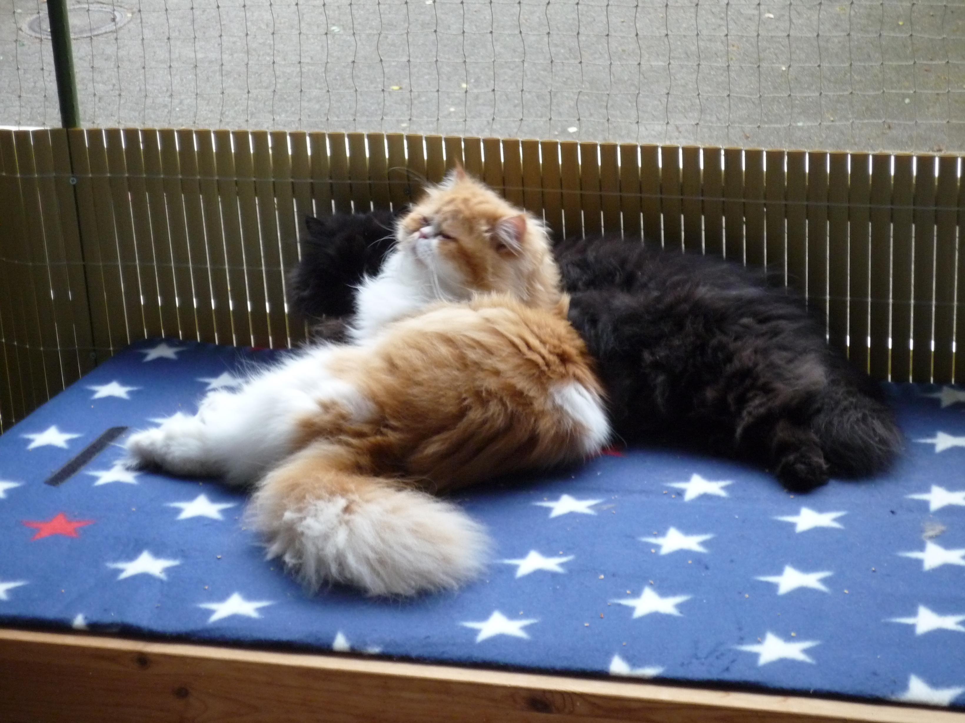 Ja, genau! Wenn manches auch nicht so ganz 100%ig läuft, zumindest nach meinem Empfinden (Mimi will auch immer da sitzen, wo Susi gerade sitzt und Susi geht dann immer weg und sitzt wo anders. Für mich sieht es immer nach vertrieben aus, aber vielleicht ist es das auch gar nicht) es ist auf jeden Fall besser, als wenn eine Katze alleine rumsitzt. Das war absolut gar nichts.
