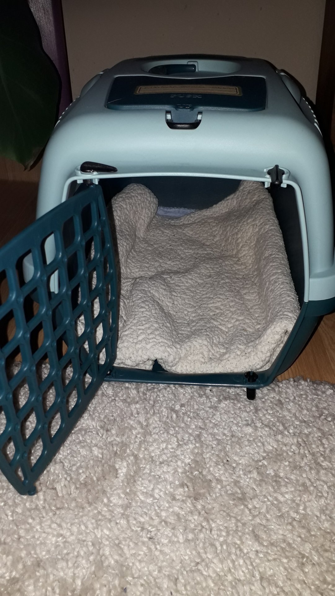 Genau und um diese Fahrten noch ein wenig angenehmer zu gestalten, haben wir uns heute erstmal eine neue Transportbox gegönnt. Da hat sie mehr Platz drin und man kann auch von oben streicheln.